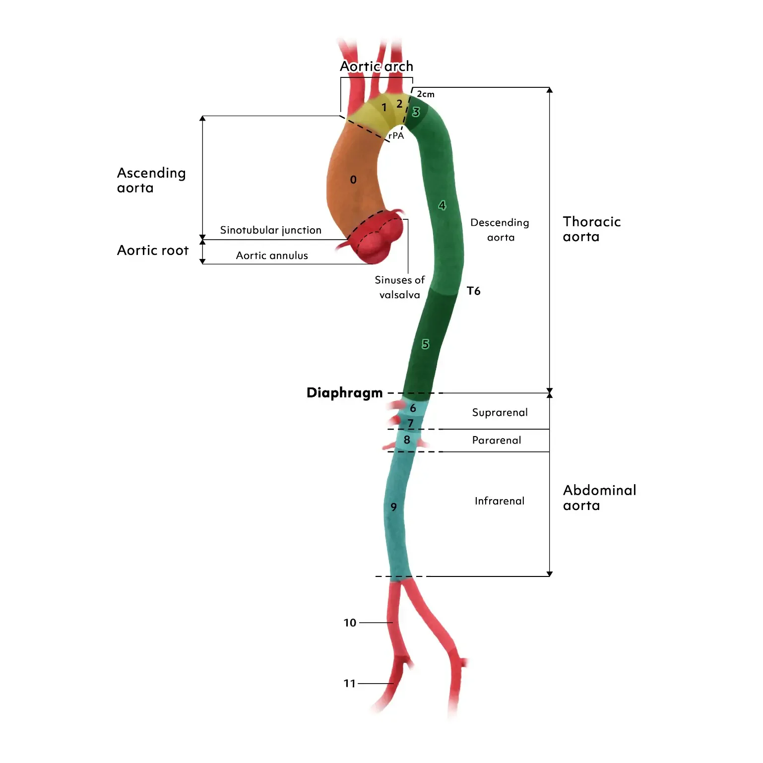 The aorta is essential for life; healthy blood flow depends on its strength and shape. Problems with the aorta, like tears or bulges, can be very serious.